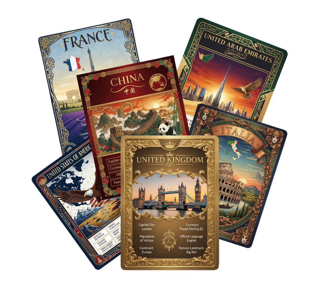 Join a global collaboration creating collectible cards that teach geography, culture, and language. One artist per country. Ongoing royalties.